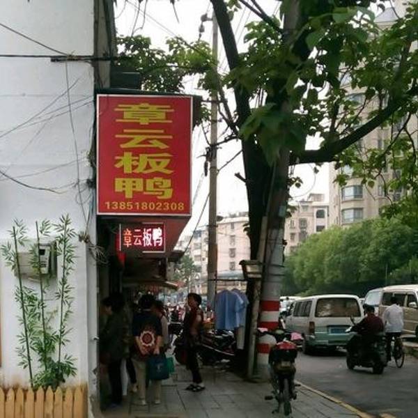 这家鸭子店在南京可谓是无人不知,无人不晓了。大家都知道的头等原因就是因为拍多的人实在是太多,而且可怕的是无论是什么时候去去(哪怕是工作日的10点这个冷清的时段),都是排队排的吓死人;很多住的远的大爷大妈没事都是坐公交车跨越大半个南京城来买,还真空带走。一般上午11半前,下午5点之前鸭子就被买光了。第二就是因为味道太好吃了,话说南京的烤鸭店没有1千也是800了,但唯独这家店让我吃了觉得味道让人忘不了。章云板鸭的鸭子肉质就很好,感觉肉质紧实,但又不觉得老,烤过之后反而觉得嫩嫩的,刚出炉的时候还能咬出肉汁来,味道非常鲜美。而且这家的鸭子没有鸭骚味,好奇怪,不知道是用什么手法去烤的,吃起来只有烤鸭的香气。一般一起去买烤鸭都是买1/4 个前面的,如果是章云烤鸭一定要半只,因为1/4 根本就不够吃。这家店在评事街,门口并没有特别近的公交车,可以做游4路到评事街下车,然后往南走大约12分钟就能到了。如果是团购的话是最好记得先预约哦。
