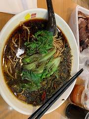 - 店面很小,只有窗口,不能堂食,于是打包带走,路过一家回味面馆,点了一碗雪菜肉丝面,配着吃