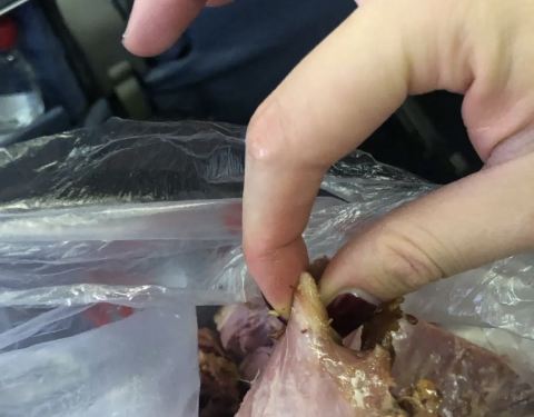 一共59元 这是外带的 现场要了份传统烤鸭。鸭前脯)13元 送了老卤 看上去肉质鲜嫩 可惜皮厚...