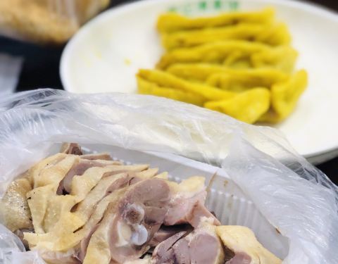 先路过升州路上的章云板鸭店,工作日的下午也全是人,目测排队需要一个钟头,️特地开车过来买的,也有拖着行李箱的,看来这家是老字号中的网红店,没错了…… 然后来到评事街的这家店,瞬间人少很多,前面也就几个人,旁边是快递包装点,代寄服务,也是很周到啊…… 买了烤鸭和盐水鸭,各1/4,一共50块不到,其实不便宜哒,然后带到附近的李记清真馆去吃,这样有点不厚道,不过那里实在没地方堂食啊…… 味道是蛮好的,盐水鸭皮肥肉嫩,更好吃,四个人才把这两盒吃完,量还是很足的!
