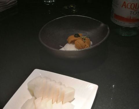 从冷盘到甜品一餐一下来大概十余道 会根据你的用餐节奏上餐 比较惊艳的,浓淡适中的高山茶.现磨的芥末,第一让我对芥末这种存在产生好感,味道没有芥末膏那么重 入口没有那么难 回味也不呛鼻!