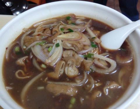面条滑爽,面汤味鲜,特别是酸莱鱼面和大肠面特好吃,吃后忘不了。