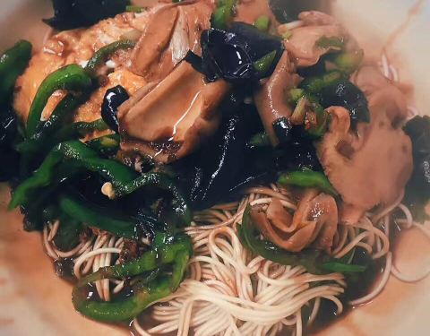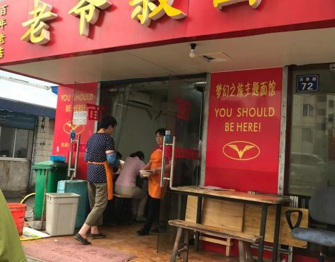 跟着攻略找到的第四家无锡苍蝇馆子,是一家相比之下环境还算正常的小店,店铺不大,几张桌椅,饭点的时候比较拥挤。老爷叔面馆主营各种浇头面,品种很多,除了煎鸡蛋之类的外大多浇头都是现炒的。