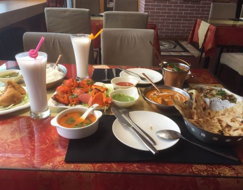 在长江路附近环境很有特色,服务也不错,老板是印度人厨师也是,比较正宗。人不少,咖喱比较推荐,米饭是印度米所以有点干,配着酸奶一起吃解辣还中和口感。咖喱配饼比较好吃,饼的话有种带馅的很香,趁热吃最佳。酸奶是自制的,加糖多的口感好。酸奶豆粉球很特别,当前菜吃还不错,总体来说很有特色,人均一百以内,不算贵。