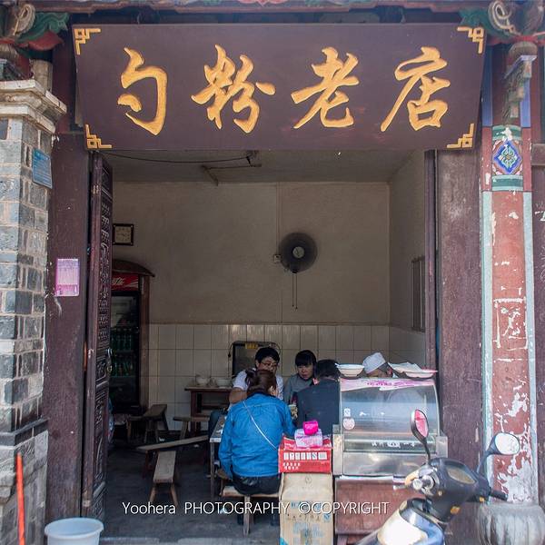 放下行李,洗了澡,逛逛街。 旅馆对门就是木瓜老店和勺粉老店,“LP”“和舌尖上的中国”都有专幅介绍。 先进勺粉老店要了烤豆腐和酸菜米线,吃了觉得名不符实,特别是烤豆腐,只有蚕豆大小,味道比石屏烤豆腐差...
