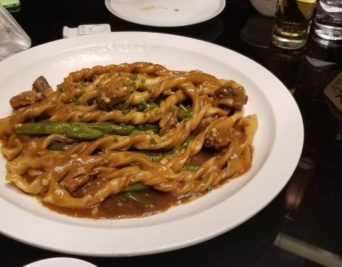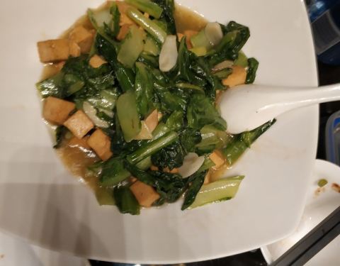 福朋酒店的中餐厅,小贵。 不过凭心而论,做得口味还不错。住店客人可以享八五折,要到前台去要。 它家以固安特色菜为主,口味偏咸。排骨焖卷子是每次必点,以往卷子焖得比较硬,这次都不错,吃了几次,明显软多了,孩子也能吃。 小白菜炒豆腐,略咸,除此以外都挺好。 新菜里,酒香东坡黑猪肉挺好吃的,做得很讲究,五花肉用草扎上,底下垫着薏米。酒香味儿很浓,适合我这样的口味。 干炸香菜丸子,创意挺好,上桌也很好看,可惜炸得不够火候,要不然是很好的下酒菜。