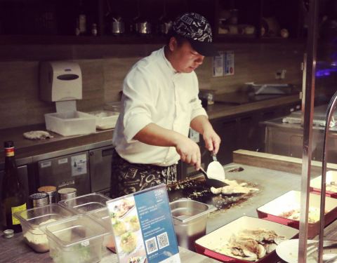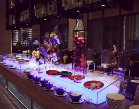 味道很好,氛围也不错。晚餐很是丰盛。我们坐在了距离舞台不远的地方,之后选择喜欢的食物,小锟自然是最简单的米饭不可缺少。虽然很多食物已经所剩不多,但毕竟还是很美味的。吃到了喜欢的大螃蟹,还有各种甜美的蛋糕。小锟看到蛋糕以后,一定要一块,看到他那么喜欢,平时我们不太喜欢给他的食物,这次就当是开荤了。最赞的地方在于现场烹饪牛排,锟爸很早就过去排队,当然这个时间人不多,只需要等几分钟。锟爸美滋滋的端着牛排回到座位上,一个劲的夸赞美味的牛排。或许他万万没有想到可以品尝到牛排吧。