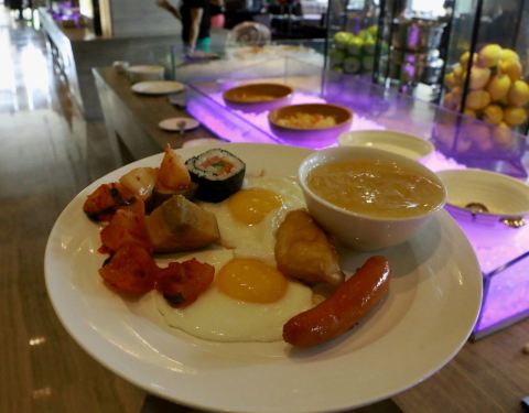 早餐还可以吧,中规中矩。菜品数量可以的。反正够小朋友溜达的。