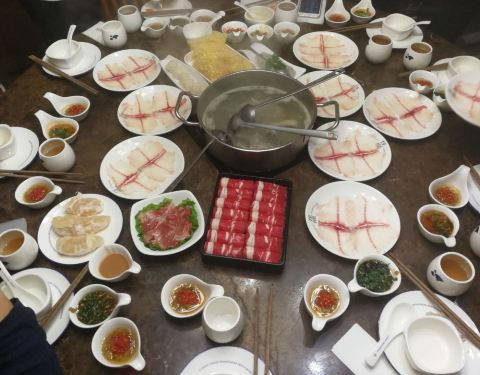丽江龙继斑鱼庄,薄如蝉翼的鱼片都是用黑鱼切制,后用丽江龙继斑鱼庄秘制的酱料稍加处理而成,两瓣鱼肉片中间有鱼皮连接着,在火锅内涮上3—5秒即可食用,两旁的鱼肉超鲜嫩,中间的鱼皮又很Q弹,沾上佐料,口味绝佳。他们家的水饺,真心好吃,饺皮适中,内馅超好吃。