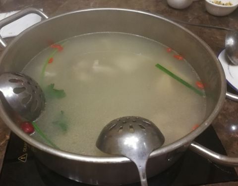 鱼片特别薄 在锅里涮个几秒就可以吃了 有点像脆鱼的口感 汤底也很鲜 其他的菜就跟火锅一样 还可...