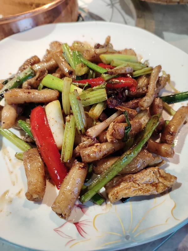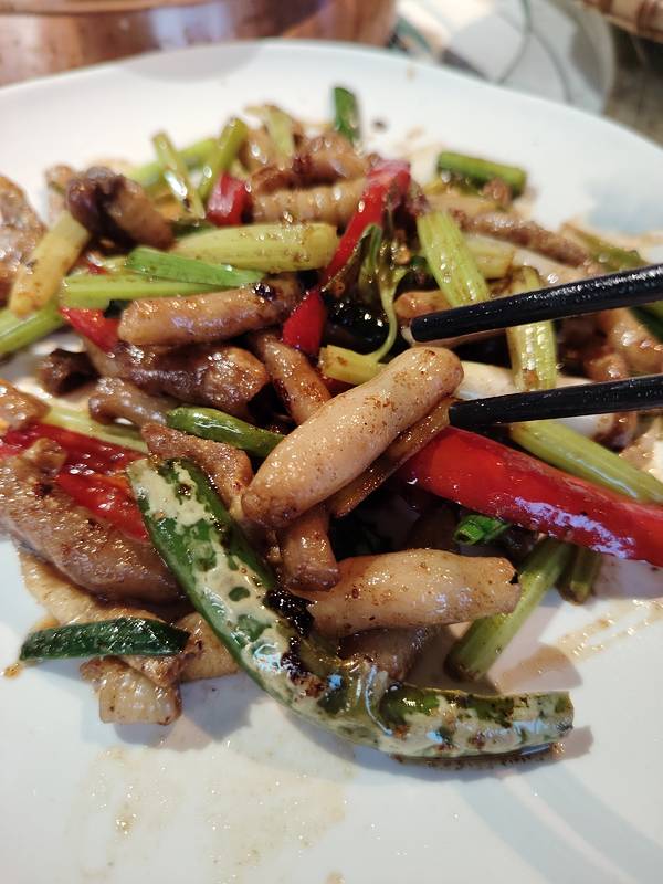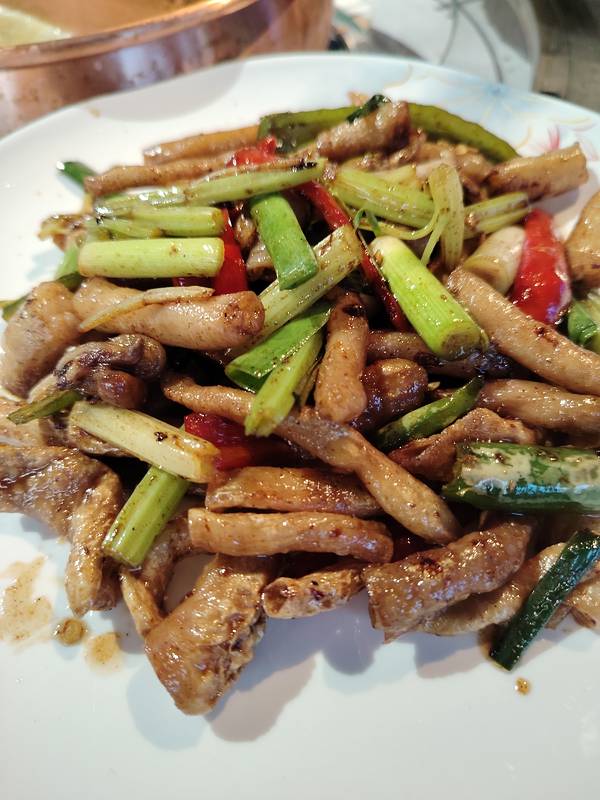 实况拍摄:爆浆的爆炒羊肠和带皮的姜丝炒都安黑山羊片,真是一盘都不够吃。好想再去南宁亭洪路唐大厨都安黑山羊大吃府再吃一次哦。