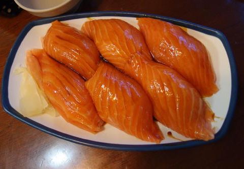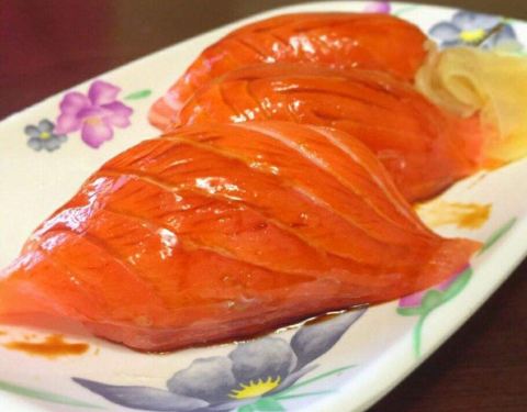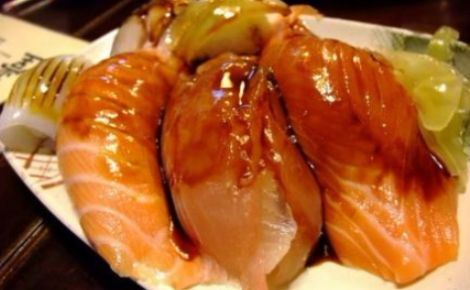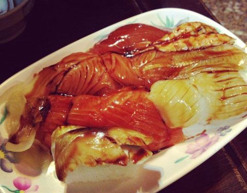 - 其实这么大片并没有很好吃,且上面有些微酱汁,相对之下还是普通的生鱼握寿司比较好吃