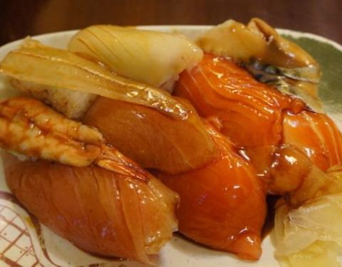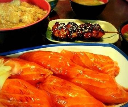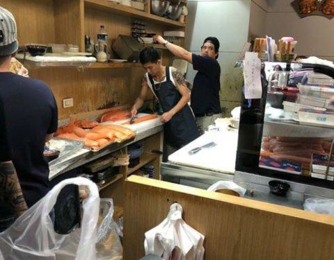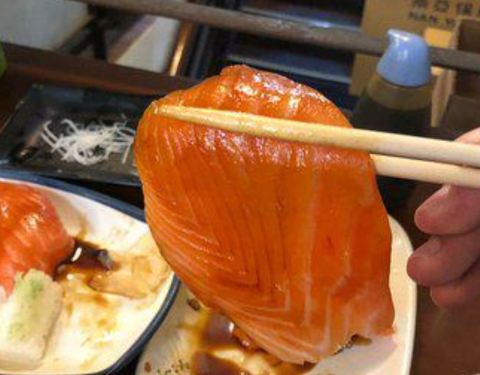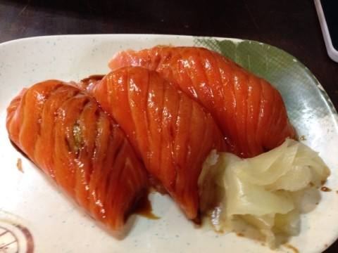 看到很多人在门口,所以跑去凑热闹,外边一堆观光客的日韩顾客,要有排队的准备,不过翻桌率看起来算快,所以应该还好。鱼生很大份,真的每件都十分大,很新鲜。其实这么大片并没有很好吃,且上面有些微酱汁,相对之下还是普通的生鱼握寿司比较好吃。