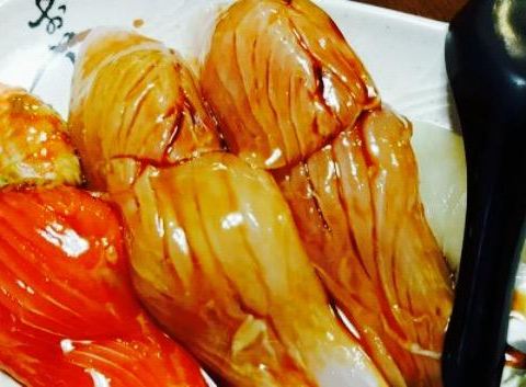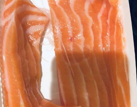 这家店最出名的就是这个超级长的三文鱼刺身了,不过吃起来没有一口一块吃起来香,主要噱头比较的好,不过是三文鱼腩,入口还是很嫩的。