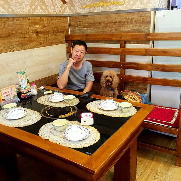 下午2点50到达宾馆,稍事休整,把昨天便宜的大西瓜开了,不甜,在大众点评搜了评价颇好的一招鲜全羊铺,电话询问可以带狗,便直奔而去。老板人热情实在的很,耐心介绍每一种菜品的特色和口味,不捆绑销售不强卖菜品。因为只有三个人没有原则评价最佳的烤羊排,但羊排3斤只卖108,很良心啊,下次有机会再品尝。要了羊汤手把肉,沙葱鸡蛋两个特色菜,都非常满意,尤其是羊汤非常鲜,我们路上剩了点发面饼泡到了汤里简直太美味了!建议老板增加个馍馍搭配这道菜卖~全家人都吃的很满足 小店布置的具有浓郁的内蒙特色,用餐环境不错,旺宝依然不吵不闹,乖乖的等着