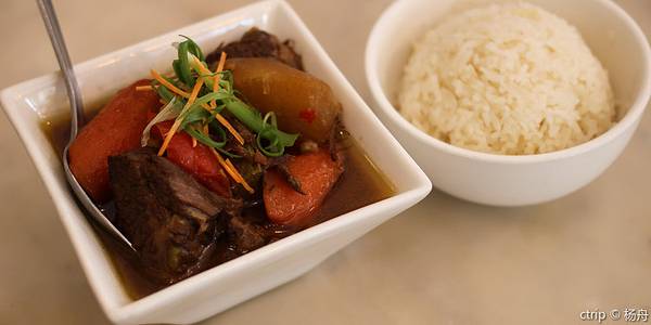 超过60年历史的海南鸡饭店,店面风格用的是旧式咖啡厅风,白鸡,烧鸡,油鸡还有烧肉叉烧任君选择。除了鸡饭,令人比较惊艳的是海南风味炖牛肉,再来上一杯红毛榴莲饮品,刚刚好。