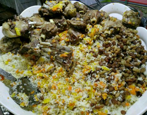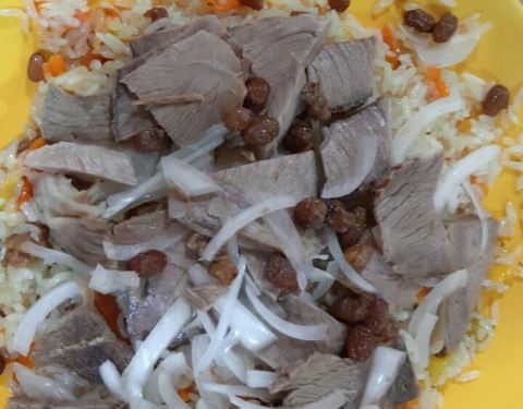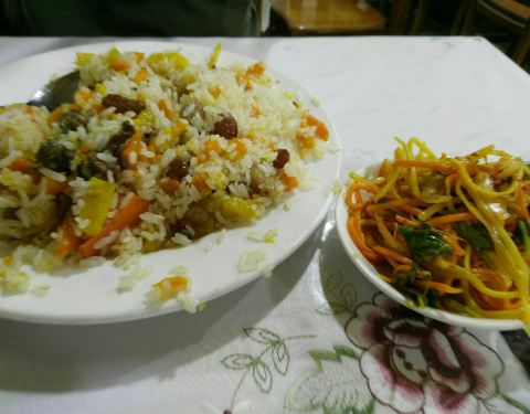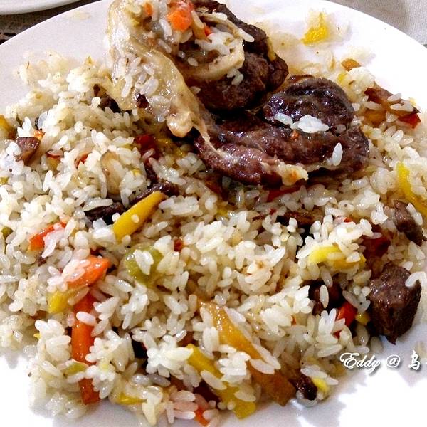 ...随着别人进去,点了手抓饭,真的好吃,在新疆吃的抓饭中最好吃的一顿)除了羊肉还有许多葡萄干等水果