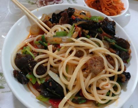 午餐去的大巴扎附近的阿里木特色抓饭,羊肉很美味,店里生意非常好,值得推荐。 在这里我们和湖南妹子湘湘,还有燕琼的网友山东小伙AK188会合,开始计划四个人的新疆之旅。AK188提议去喀纳斯,他已经联系好越野车...