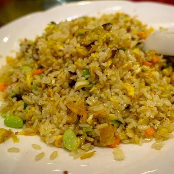 地址:广陵区文昌中路366号 人均:30-40元 ,性价比高到想流泪。 据说是当地人喜欢去的地方。 因为招牌比较小,要穿过巷子才进去,紧挨的两家。内部环境也比较简朴,大厅里说着当地话的人们在高谈阔论。。。 当我们看到菜单时,简直要被它便宜到哭。。害怕不好吃就先点了4个菜尝尝。。。吃到撑爆还剩下一半,人均40。 上菜时,分量简直吓到哭,对比过南京大排档里的小碟子小碗,这分量足的简直有种东北人的豪爽。。。。注意,图中出现的勺子均为汤勺,请自行估算比例。 一尝味道,我们已泪流满面。。这简直是这辈子吃过的最好吃的扬州炒饭。请自行脑补画面并配上台词”我以后不来扬州的话就再也吃不到这么好吃的扬州炒饭了,想到这里,就悲伤了起来“。 诺。。这就是一份黯然销魂的扬州炒饭。
