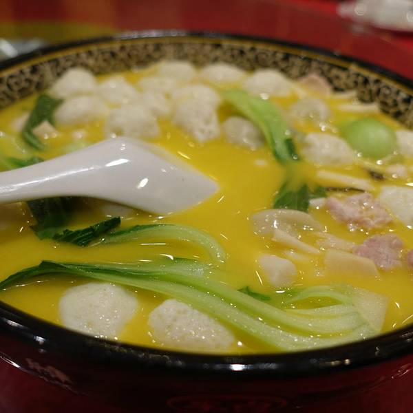 服务国营,有当地人在吃,也有旅游的人慕名而来,确实量大实惠,狮子头三个起点没有尝试,三鲜汤(素)青菜新鲜非常推荐!但是就餐环境比较嘈杂(因为周边都是大圆桌)且边就餐边吸烟,地上不少烟头。菜品口味尚可,青菜新鲜,口味清淡。