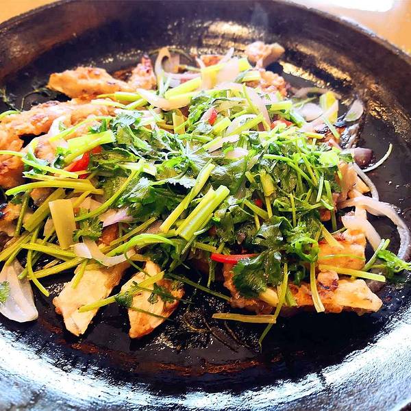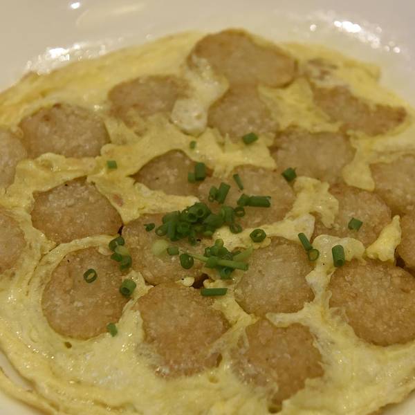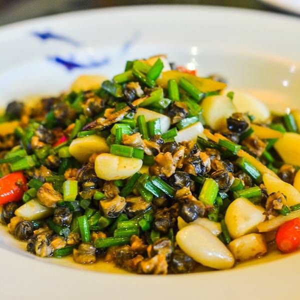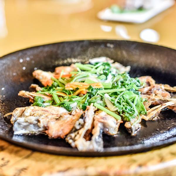 简简单单的要了几个菜,辣炒三脆把鸭脆骨、鸭板肠、鸭膝盖炒在一起,第一次吃到这样的做法,很是新奇,味道也非常不错;竹荚鱼因为体型比较小,通常难登大雅之堂,但是肉质却非常的鲜美,值得尝试;蛋煎糯米肠是当地的特色,糯米肠被煎得焦黄,再裹上鸡蛋,又香又有嚼劲;杨梅粿红红的一盘,里面是黑芝麻的芯,外形非常讨喜,甜甜糯糯的超好吃。