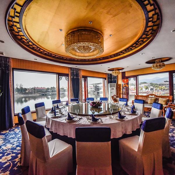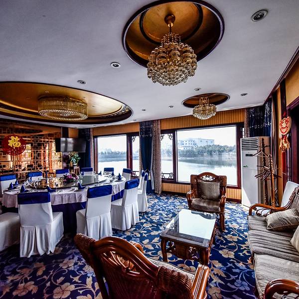 餐厅距离广州街香港街和明清宫苑景区都很近,位置优越。从广州街景区可以步行过来,餐厅的面积很大,是横店影视城内规模最大的餐厅之一了,有环境优美的包间,我们的包间靠窗的一面是广州街景区内的珠江,餐厅也因此而得名。