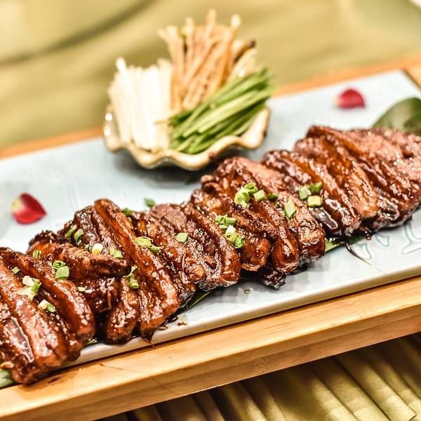 在餐厅里面即可以看得到对面广州街香港街的景色与演出,可以在餐厅内边用餐边欣赏广州街香港街的景色或者精彩纷呈的虎门销烟演出更或者是中英鸦片战争的演出。酸辣汤煮鲜鱼是一道非常爽口的菜肴,不仅仅颜值高而且还很下饭的呢。这是一道非常珍贵的菜,都是鱼身上最珍贵最稀有的部分,但是必须要趁热吃掉才行,否则就失去了最佳的口感了。煎饺在这里既可以当作菜肴也可以当作主食来食用的哦。这里特色的煎牛排,您一定喜欢的。这里的每一道菜都是用心在做,这里的菜不是食用的而是一种艺术品,难道不是这样子的吗?虽然名字叫做珠江渔村,实际上是以浙江菜系为主,兼其他地区的菜系为补充,基本上可以满足全国各地的演员和游客们的就餐需求。诸如眼前的这道菜就是了。每道菜都能勾起你的食欲,看到了就想吃呢。这香肠烧笋子是浙江和皖南人民最爱吃的一道美味佳肴,这里的香肠就是悬挂在外面晾晒的那些香肠了。是不是感觉看起来就有一种大开吃戒的欲望与冲动呀?在这里,人们对于知道这些菜的名字叫什么已经再那么的重要了。重要的是这菜品的卖相、口感以及深沉的回忆。当我们尝到这些家乡菜的时候,是不是一种如归至乡的感觉呢?所以这些菜真的可以说是一种回忆录。江浙菜与粤菜是这家餐厅的主流,兼带其他一些地方特色菜就共同组建成了珠江渔村的菜系了。在菜品方面除了颜色方面的卖相令人垂涎三尺之外,还有就是味道偏清淡甜味的美味令人久久难以忘怀。看起来了都想吃的美味都是引发我们回忆的载体或是媒介。香菇豆腐与腊肉混烧绝对是一种无法抵挡的舌尖诱惑了,不信吗?不信的话就来这里尝一尝吧。东阳市自古以来就是浙南地区农业为主的县市,由于这里的土地较浙江其他地方显得贫瘠一些。所以,这样的人们都期待土地更为肥沃一些,所以在发明了一种祈祷着土地肥沃的面食,就是我们眼前的这个面条了。这道面条叫作东阳沃面,是东阳传承很久的一道传统特色小吃,也可以当作主食来吃。来东阳这样的特色绝对是不容错过的。在这里菜品多的话,可以在让全国各地的人能够不在家却能够吃到家乡的口味,是不是非常的暖心至极呢?我想肯定是的了。眼前这就是很多地方流行吃的梭子蟹。