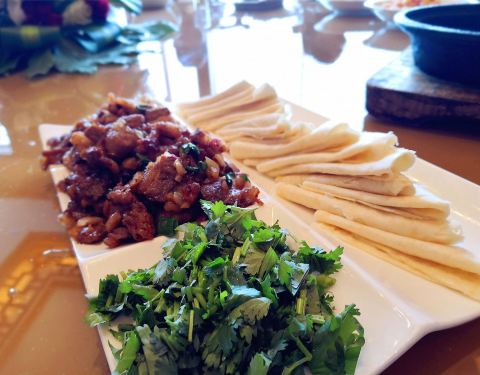 中午吃饭的时间不长,点的都是比较下饭的菜。上菜速度很快,份量也不算小,是一家性价比比较高的餐厅了。一大碗的红烧肉配着面饼端来上来,惊呆了我们,肯定是吃不完的。菜的味道也不错,是差不多每个人都能接受的大众口味。这里还有东阳当地特色的沃面,端上来也是一小盆,有点像以前吃过的卤面,人多的话可以点一份,就不用吃主食了。