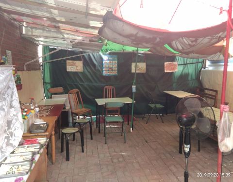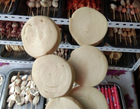 离得近竟然第一次吃,以前经常看到在大学路车站那里,很多孩子一放学就来吃,后来搬家到大院里了 昨天有闲情,下午来试试,大院进门一直往里走,会看到图②,走到里面就是了哦!大叔自己家的院子,搭着棚,好似野馄饨的风格 下午四点开始,大叔听见我打电话,帘子拉开说进来吧,嘿嘿,以为我是大客户,谁知是来打打牙祭,晚饭还要继续的主[呲牙][呲牙] 种类很多,我只选了自己喜欢的,豆制品主角,素鸡,小豆腐泡等,食材被炸过后偏干,吃着香,抹上了一层辣酱,哇哦,不错,就是卫生有点那啥,酱什么的都是裸露在外,毕竟是室外