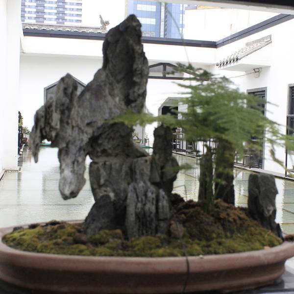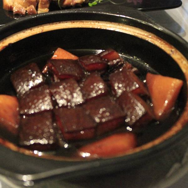 这家餐馆位于中山路新百广场对面,我和朋友们在这里吃过一次饭。因为中山路正在修路,不太好走,我只得把车停在了新百那边的停车场,步行过去。 餐馆位于习三内画博物馆的七楼,首先,这里的环境是非常有情调的,古香古色的,布置很讲究,雅致。很多仿古家具,据服务人员介绍,部分家俱是真正的古董。 餐馆的服务人员态度很好,着装也非常讲究。放着安静的古筝音乐,非常安静的环境。上菜的速度很快,没有固定的菜系,我个人觉得这里的红烧肉太好吃了。服务人员介绍是用花雕腌制后再炖的,超好吃,一圈下来就见底了,看来朋友们也喜欢啊,还有菠菜面,特色小饼,都很提人食欲,尤其是这里的菜非常讲究补,以中药入菜,有天麻,和三七,都是非常讲究药补和食补同器皿也颇为讲究,非常精美,喝过水的杯子底下竟然还有字,真是太有意思了。九楼也是餐厅,是位于大楼顶层的半开放式的,仿徽派建筑一下子就把人带到了烟雨江南。装饰的也非常讲究,还有古琴呢,真是让人有种清雅的感觉。还有古琴,可是我们去的那天琴师没在,没有欣赏到古琴演奏。我们几人吃饭后,就在九楼的天台上玩了一会,顺便下了一会棋,朋友对我的招待很是满意,希望下次还来这里。服务人员把我们送到了门口,挥手道别。