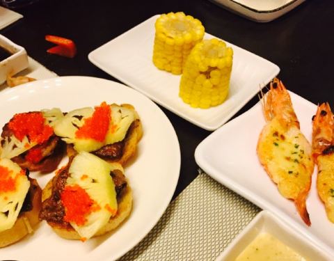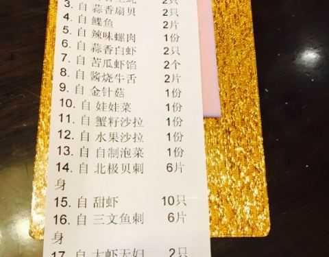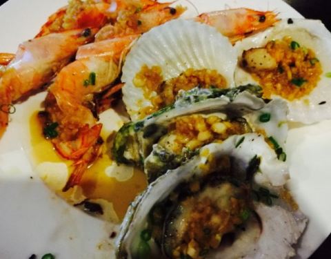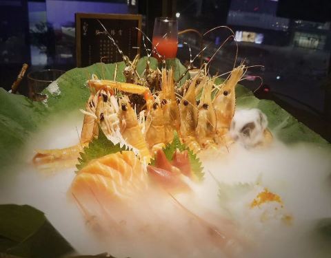各种菜品的味道都一般吧,可是菜品还是很清新,三文鱼各种都吃得出来食材真的不错,服务员人数确实也不够,叫了好久都没有人来点菜,上菜的速度也比较慢,不明白为什么觉得肉类偏淡,像是羊排和牛排那些,明确的黑椒比较淡,比较喜爱的就是芝士焗扇贝,这个味道比较足,可是吃多了也会比较腻,建议不用一次点太多,那个火焰螺肉里面其实香菇比螺肉还要多好多,不管是蒜蓉开边虾还是芝士焗开边虾都没有椒盐烤虾味道好,那个感觉霞比较有嚼劲,清酒可以随便喝,只是真的不是质量好的那种,比较惊讶的是大福,卖相一般,只是味道不错,很糯很软,还有其它的一些什么口蘑和蘑菇虾一类的素菜做得也还算可以。