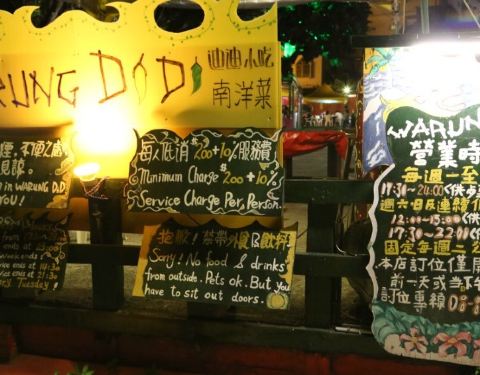 垦丁大街有很多异国料理餐厅,主打南洋菜的“迪迪小吃”便是其中超高人气的一家。色彩艳丽的装潢,门帘和两旁的花纹雕刻,散发着浓郁的南洋风情。迪迪综合了新加坡、泰国、马来西亚等地的特色菜肴,酸辣开胃的南洋料理刺激着味蕾,还有Fusion菜的惊喜感。有室内和露天座位,不过常常爆满,建议去之前提前一天订位。特色推荐有特制炸鸡,泰式酸辣汤,炸鸡,马来西亚炒空心菜等。