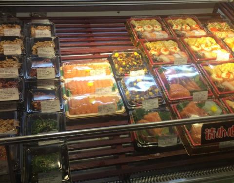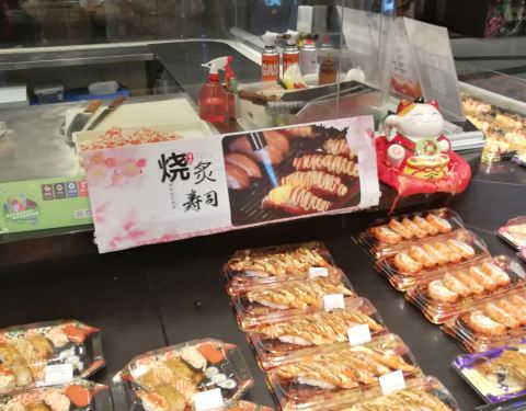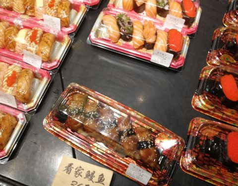 - 鮨士道在美罗城B1的五番街,店面虽然不大,但买的人非常多,结账时都排队了
