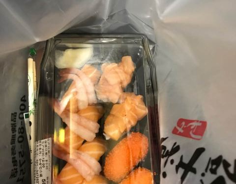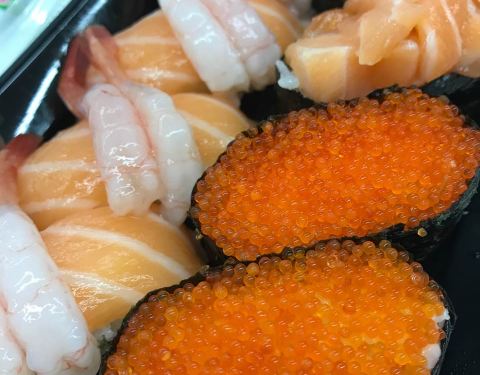 很划算的寿司〜下课了买一盒当点心!喜欢鱼子寿司和加州卷