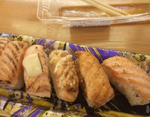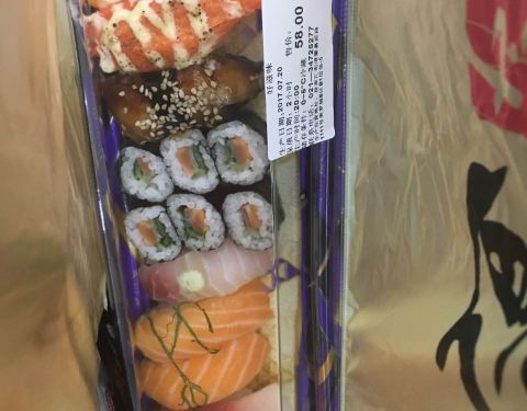 鮨士道在美罗城B1的五番街,店面虽然不大,但买的人非常多,结账时都排队了。寿司品种蛮丰富的,有帝王蟹柳、看家鳗鱼、美味双拼等等。