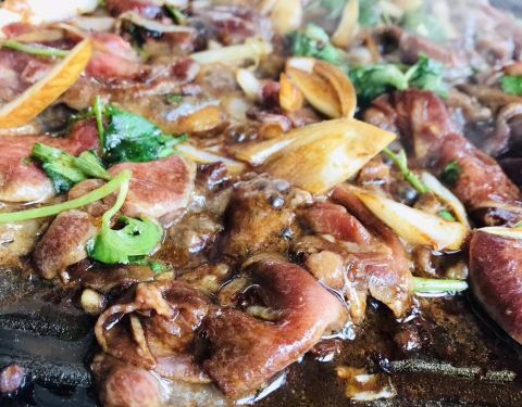 很爱吃他家的烤板筋,板筋是提前焖熟的,所以随着炒热就可以吃,别看厚但是特别嫩,一点都不塞牙