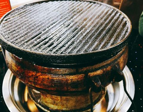 这里要表扬一下老婆,是她俩提的建议,在电视美食节目看到这个介绍,感觉不错,就上网查到是这家餐馆,后来在百度查到共有三家分店,由于离奥体中心比较近,我们选了这一家,去到的时候大概是下午五点多,也不用排队等候,等到大约六点时,就来了不少人。在这可以选择涮肉或炙烤两种 ,炙烤的肉都是和调料配搭好的,很方便。