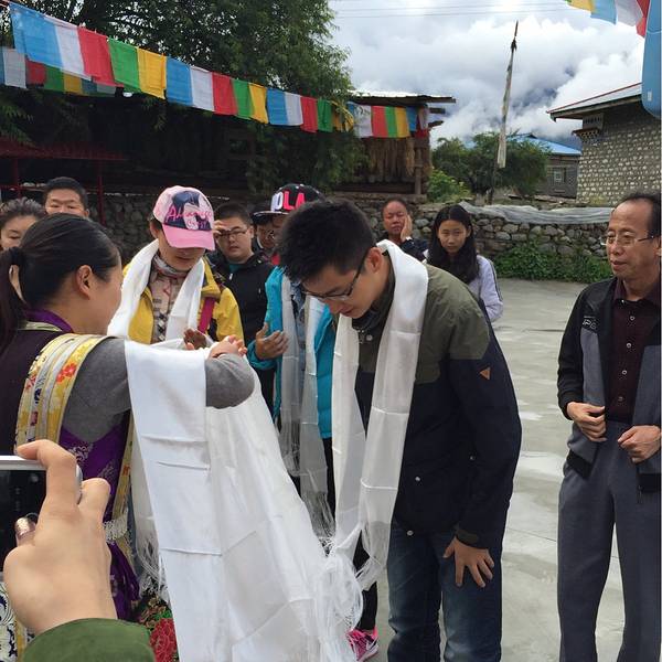 藏族人很热情,给每一位游客都献上哈达,邀请游客去家里参观,介绍当地的历史和风土人情。
