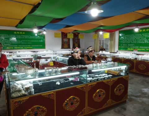 从林芝回拉萨的路上,在西藏民俗第一村停留,到藏民家做客,喝酥油茶。导游讲解介绍村里的历史和故事。村里有银器手工艺作坊,给游客用银梳、银碗做刮痧。游客可购买他们制作的各种银制手工艺品。