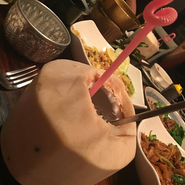 和朋友约在K11吃饭,还是选了喜欢的泰国菜,开放式的餐厅,朋友提前到的坐在二楼,环境时尚。天气热,饮料点了椰青,新鲜好喝,口感清甜爽口,喝完水还能挖椰子肉吃,和泰国菜很搭。香茅虾色拉,虾很大很新鲜,香...