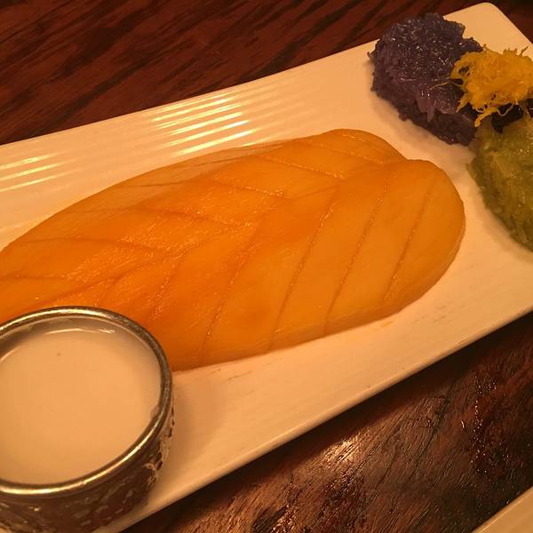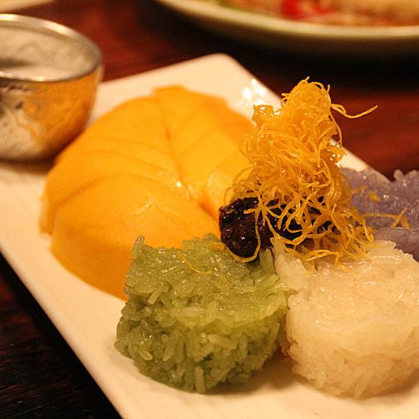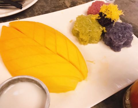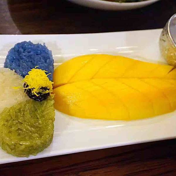 泰芒糯米饭 最爱的一道,既可以做甜品 又可以做主食。三色糯米饭甜蜜软糯,和香甜的泰芒特别相衬。还可以蘸取椰浆,入口层次丰富。