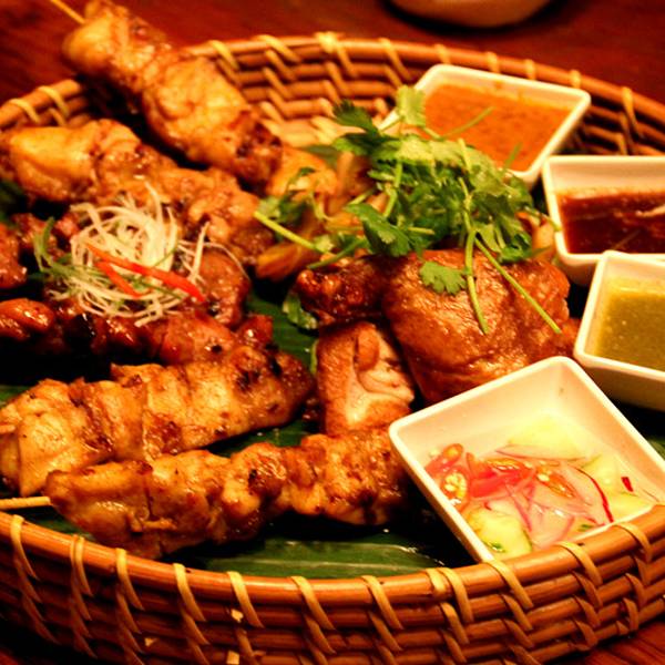 许久没吃过泰国菜了,于是最近的一场朋友聚会就选在了K11里的home家。 闷热的夏日里胃口不好,于是一开始就点了青木瓜色拉和冬阴功汤这两道开胃的菜式。一个在脆嫩中爽辣,一个汤汁鲜辣爽口。吃完,顿时觉得整个人都舒爽了很多。 夏日里偏爱吃烧烤,home家也有泰式的烧烤拼盘,牛肉,鸡肉,猪肉三种烤串,和烤鱿鱼,鸭胸肉的组合,配着红黄青浅四色蘸酱,搭配一下竟然可以吃到二十种的味道。 平常都吃咖喱蟹,这次来尝试一下软壳蟹,蟹壳软到可以直接嚼下,在甜美的黄咖喱包裹下,有趣又美味。