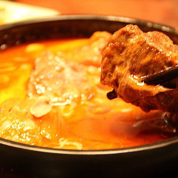 ...是辣中带甜的,里面的牛腱子块头比较大,肉质是酥嫩入味的,口感相当不错,特别是里面的土豆也很好吃