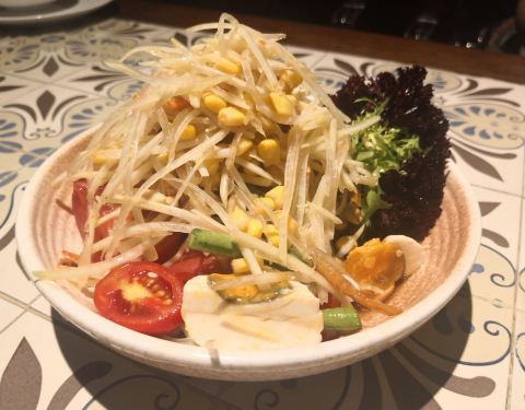 - 闷热的夏日里胃口不好,于是一开始就点了青木瓜色拉和冬阴功汤这两道开胃的菜式
