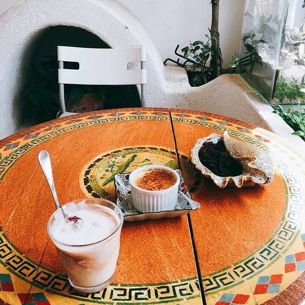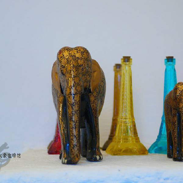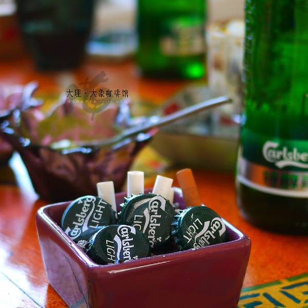 同住在一个客栈的云肖要回家了,她那先她几天离开大理的室友歪叔曾经发过一条很勾搭吃货的微博来形容大象咖啡馆里的好吃的,她说“吃過的最棒的冰淇淋。抹茶味很濃,微苦,是我愛的。百香果是個驚喜,老闆娘自己種的。朗姆葡萄一定會讓妳瘋狂的,酒味濃到感覺直接在喝酒,葡萄很大顆。”要知道,这位姑娘几乎吃遍了大理古城所有的各类美食,她的品味还是相当靠谱的,于是,在看到她的这条微博之时,我已经打定主意要去大象里步一下她的后尘,感受一把舌尖上的疯狂了。咖啡馆里那些大象小摆件时刻提醒着我们这家店的名字。。。至于典故,老板娘真的有讲,我也真的忘记了,好汗!我对她家的三个门特别钟情,因为感觉好像进入了一个小教堂一般,把普通建筑的大方门能想到改造成酱,佩服~坐下就有柠檬水喝,杏糊~等着我们点的各种美美的好吃的因为要送个朋友走嘛,所以我们决定喝点酒,咖啡馆里没酒卖的,不过老板娘开恩让我们从隔壁买了啤酒喝,当然,前提是不能撒酒疯啦~整个咖啡馆里面的装饰,如果是出售的,大部分是老板娘的艺术家朋友的作品烤布蕾上了,这是我在这里吃的最好吃的!甜而不腻这么简单的词形容不了它饱满的口感。给张特写,如果到大理想选择一个舒服又好吃且不贵的咖啡馆,这里不错~提拉米苏对我来说酒的味道不够浓,但是我想这里面比较关键的因素是我相对来说是个酒鬼吧~手工冰激淋之抹茶口味,重磅推荐!必吃款!另外这款冰激凌是什么口感没印象了,大概是因为抹茶太得我心,这款显得就甜腻了些。无论它是什么名字,下次都会点抹茶的就好了~吃着聊着,外面路过一萌正太,Q到不行,不知道是不是看我们吃的太忘我,他也直勾勾的看着他那些可以称之为馋鬼的“长辈”们~真人版蒙奇奇吃到一半,姑娘小伙都纷纷出去上厕所,于是我趁机拍了拍店内陈设。颜色搭配的切到好处喜欢这里简单明快的感觉,掌柜的说,装修这个小咖啡馆可是费了老劲了,因为本地的装修队对于掌握细节这件事相当不理解,所以,返工都是小意思~这墙壁上的格子很喜欢。墙面也有做成粗糙的质感,虽然和白族风格一点关系都没有,可就是让人觉得搭调不突兀。最有趣的是手画的说明~复古地灯 纯手工制造的Andy Warhol 明信片陶瓷蘑菇这大概是玩偶公鸡吧?老板娘很喜欢多肉植物。