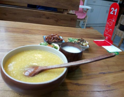 环境:整体装修风格是中式的,木质的桌椅板凳,墙上贴的砖和挂饰都是中式的风格。用餐高峰的时候可能会有拼桌的情况,面对不熟悉的人吃饭,可能会有一些尴尬。