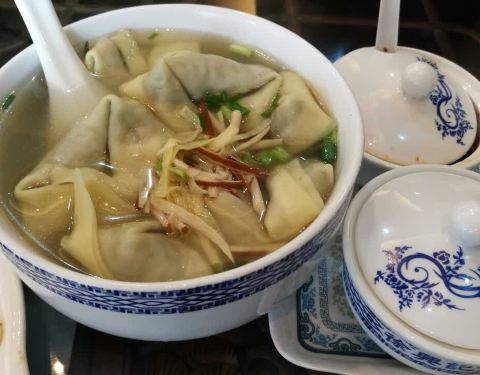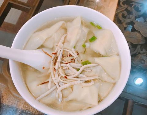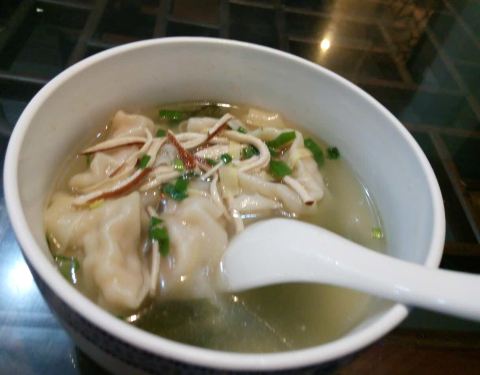 小笼包需要到指定位置自己领取,在前台点的面可以交了小票在桌位等候,只要把牌子摆在桌子上一会就会有人送过来。鸡汤馄饨比较清爽,口味很清淡,一点也没有传统无锡风味的那么甜,鸡汤还是比较好喝,馄饨味道感觉比较一般,虽然招牌叫做鸡汤馄饨店,可我个人觉得小笼包更好吃,也可能是不太习惯这边的风味,不过一大碗的量还是很足的,一碗馄饨加上一份(4只)小笼包完全可以吃饱,小笼包一点都不小,里面的肉鲜嫩多汁,咬一下再吸一口,甜甜的汤汁配上肉馅鲜嫩可口,还可以蘸米醋食用,酸甜搭配既不会被甜甜的味道腻住,还可以起到开胃的作用。
