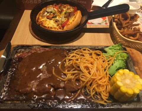 每次都点土豆沙拉。味道很好。牛排和意面也非常美味