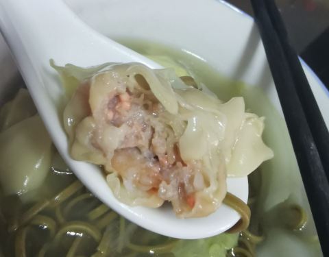 紫菜猪肉饺子,紫菜爽口,加上猪肉的口感,很不错。 炳记在广州已经来了好多年,都是做手工饺子和云吞