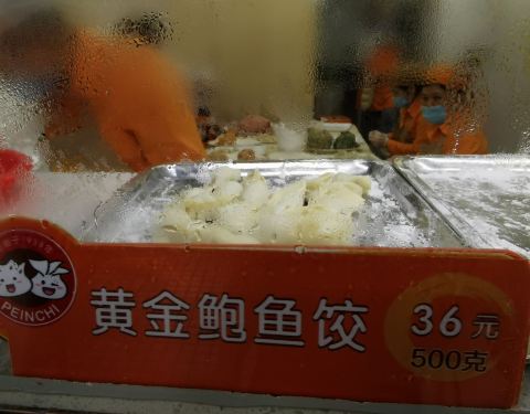 下雨天也不能阻挡我去炳记买饺子吃!! 下雨天少了排队的人~ 新出了黄金鲍鱼饺子!打算买点试试!鲍鱼哦!! 紫菜饺子,每次必买 鲜肉冬菇云吞也值得推荐!! 全家人都爱吃,棒棒哒